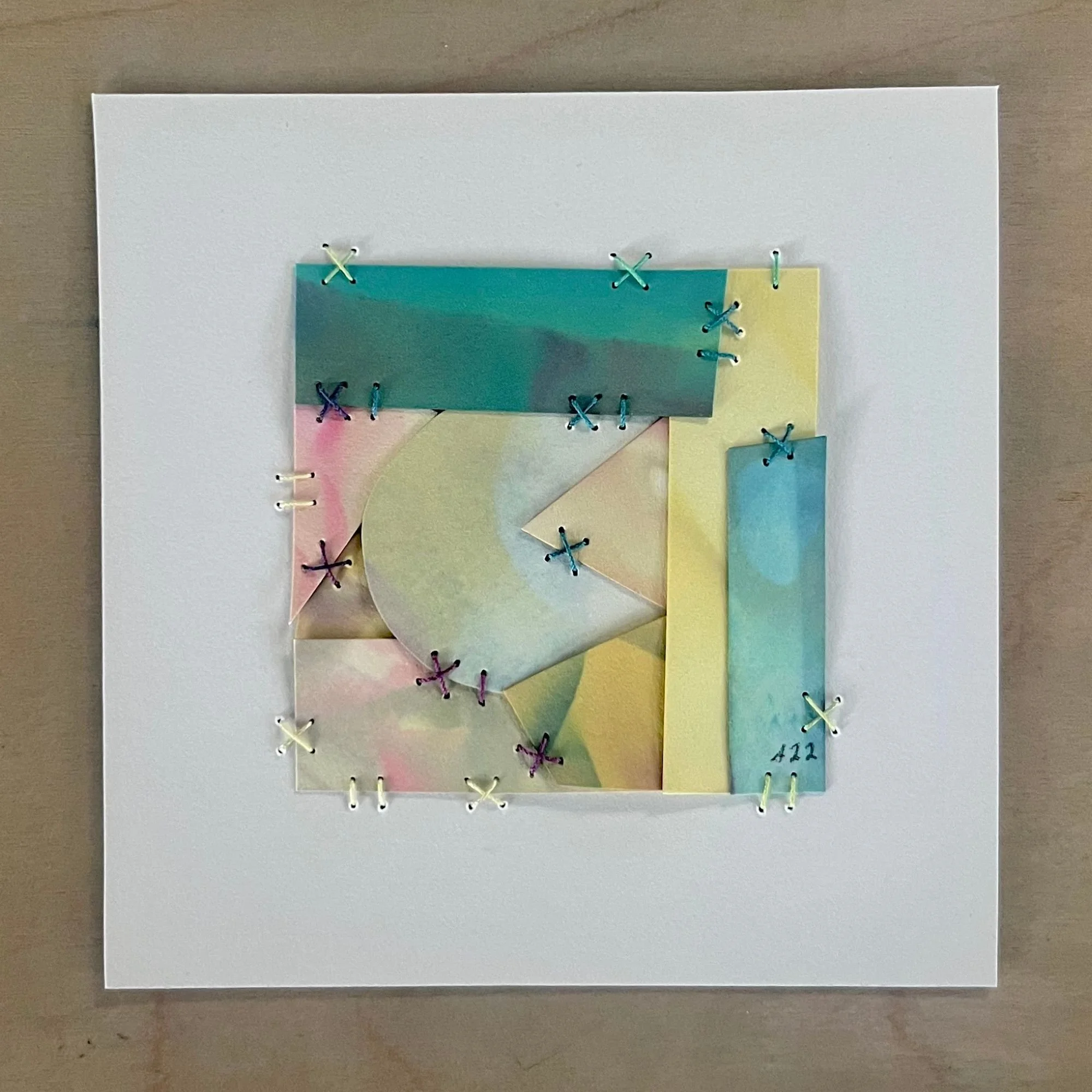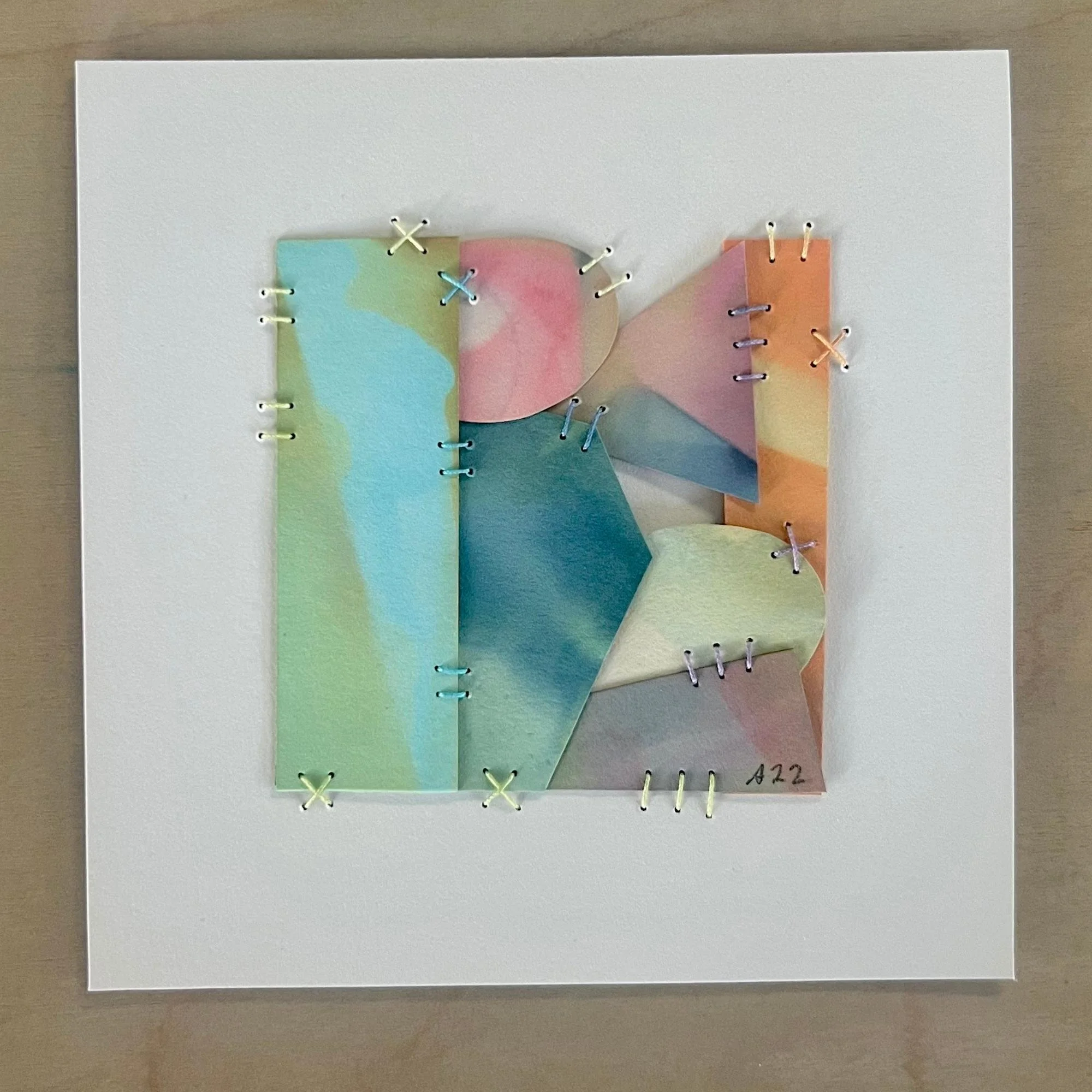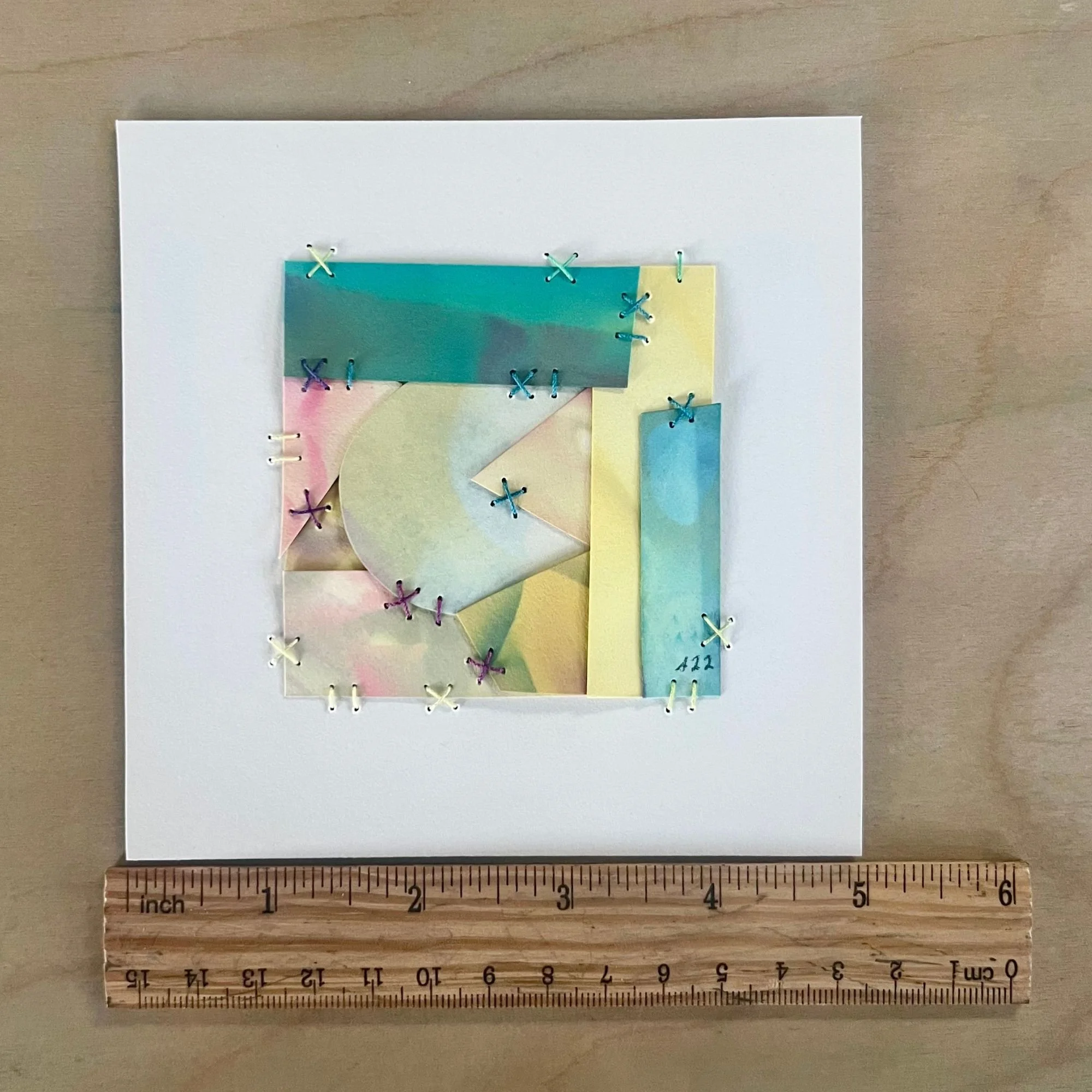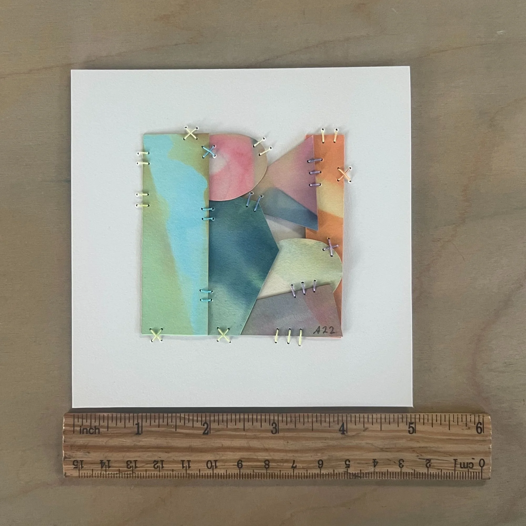 This piece is part of a series about time and how we spend it each day. I've found myself drawn increasingly to the small moments of joy and peace that are woven into daily life. Each tiny paper quilt represents one of those breath-catching moments that spark gratitude, a colorful reminder to persevere through hard times and to cherish the things we love that surround us.